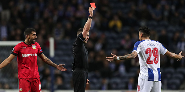 O avançado brasileiro do FC Porto recebeu o cartão vermelho direto na receção dos ‘dragões’ ao Bayer Leverkusen, por atingir com o cotovelo o central dos alemães, Jonathan Tah, em encontro disputado a 27 de fevereiro, no Estádio do Dragão.